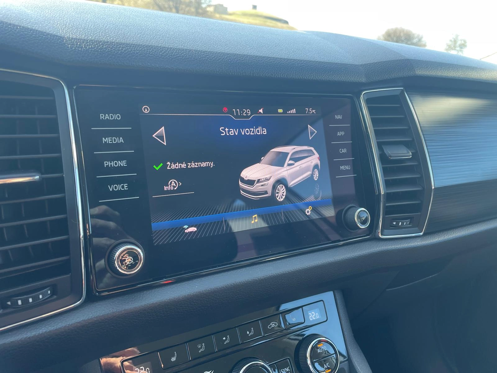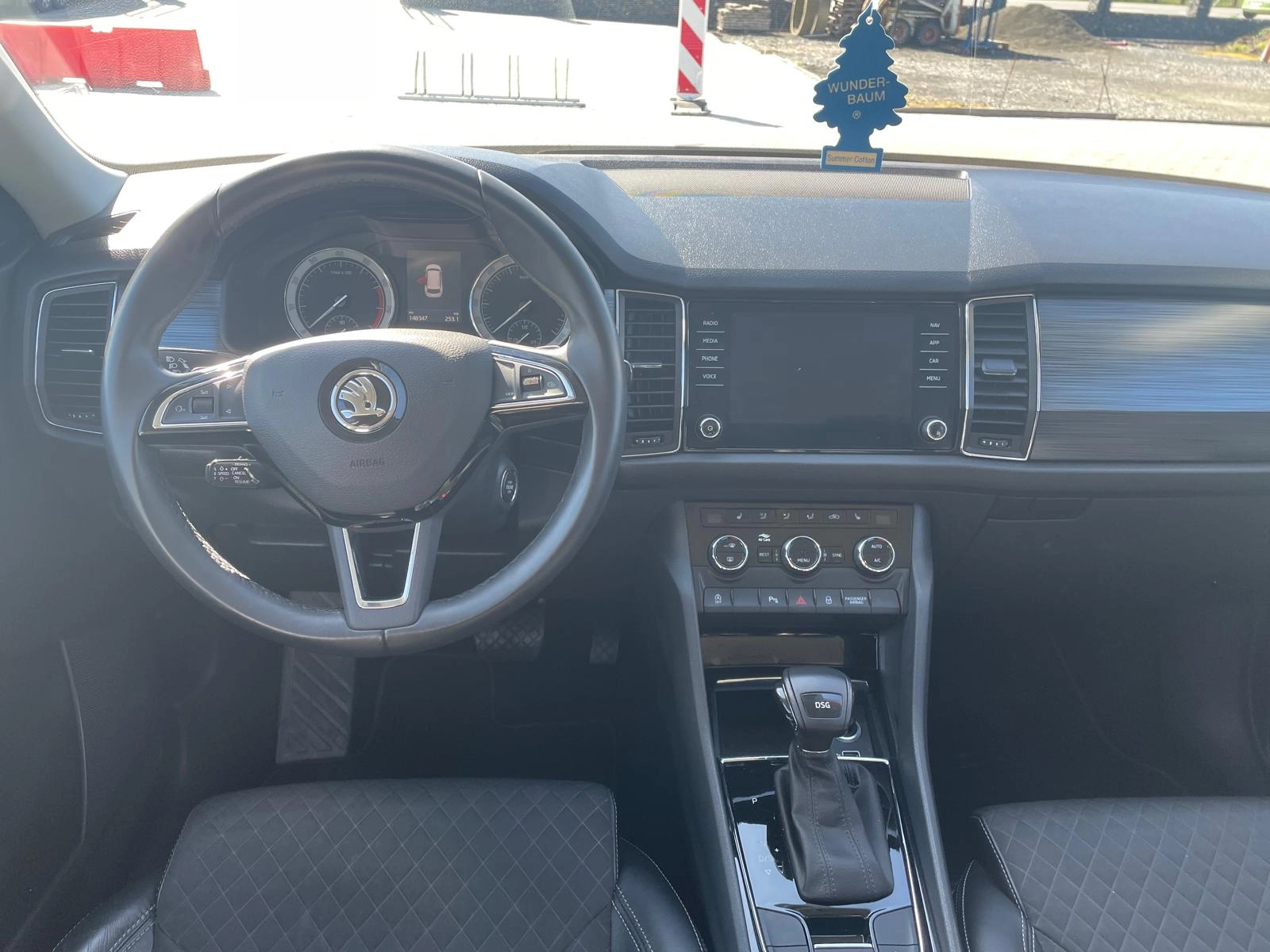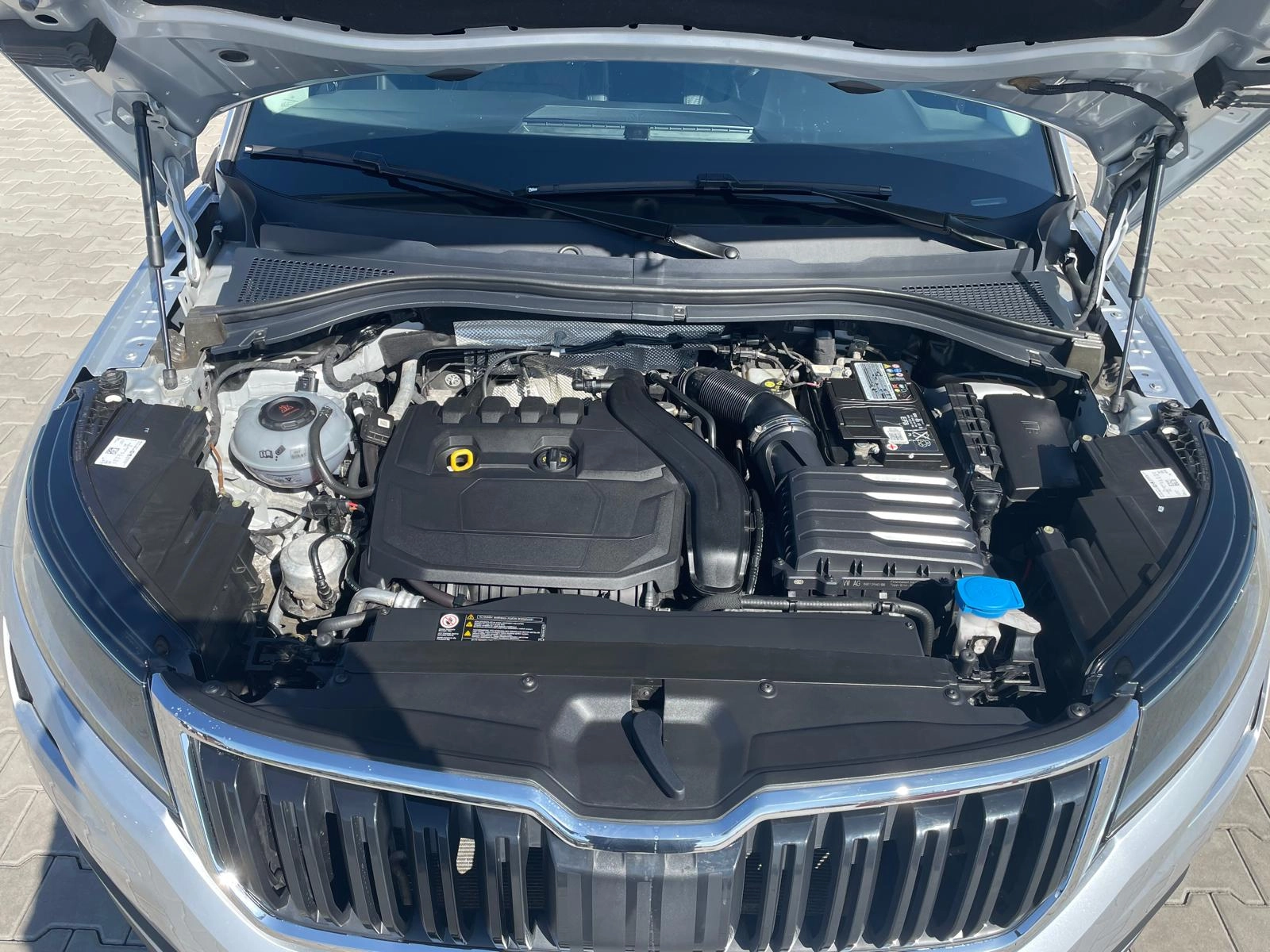 Nabízíme vůz Škoda Kodiaq s benzínovým motorem 1.5Tsi 110kw a automatickou převodovkou DSG. Auto bez kosmetických vad. Čistý voňavý interiér po nekuřákovi. Od podvozku nic nebouchá, v interiéru ticho a motor běží krásně čistě díky pravidelnému servisu. Auto je servisováno ve ŠkodaAuto, poslední návštěva servisu proběhla před 300km kdy byl dělaný olej v motoru, olej v převodovce, nová brzdová kapalina a nové zapalovací svíčky. Svíčky jsou na autě měněny pravidelně, stejně jako olej v převodovce který byl dělaný i ve 117.000km. Pěkné, plně funkční zachovalé auto.
